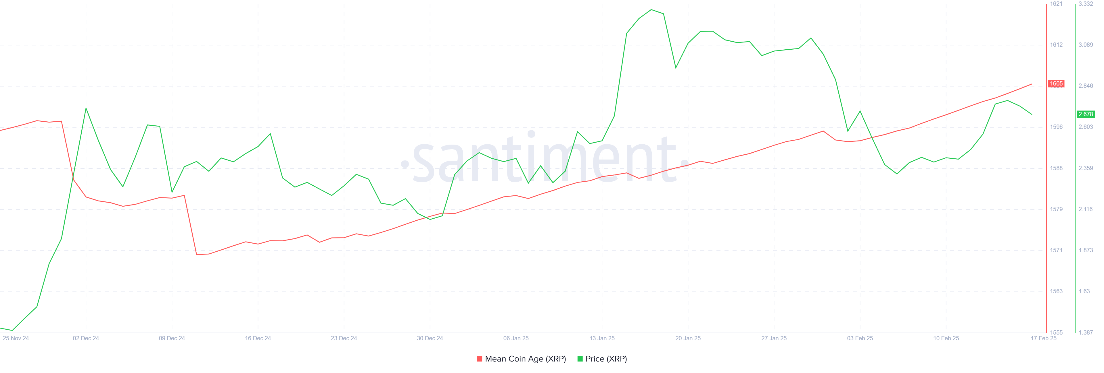 Ortalama Coin Yaşı (MCA) artış gösteriyor, bu da uzun vadeli yatırımcıların (LTH’ler) pozisyonlarını likidite etmek yerine tuttuklarını gösteriyor. Bu davranış, LTH’lerin XRP’nin gelecekteki potansiyeline inandıklarını ve iyimser olduklarını gösteriyor. Bu yatırımcıların desteği, herhangi bir potansiyel fiyat toparlanması için kritik, çünkü bu yatırımcılar genellikle herhangi bir kripto paranın bel kemiği olarak kabul edilir.