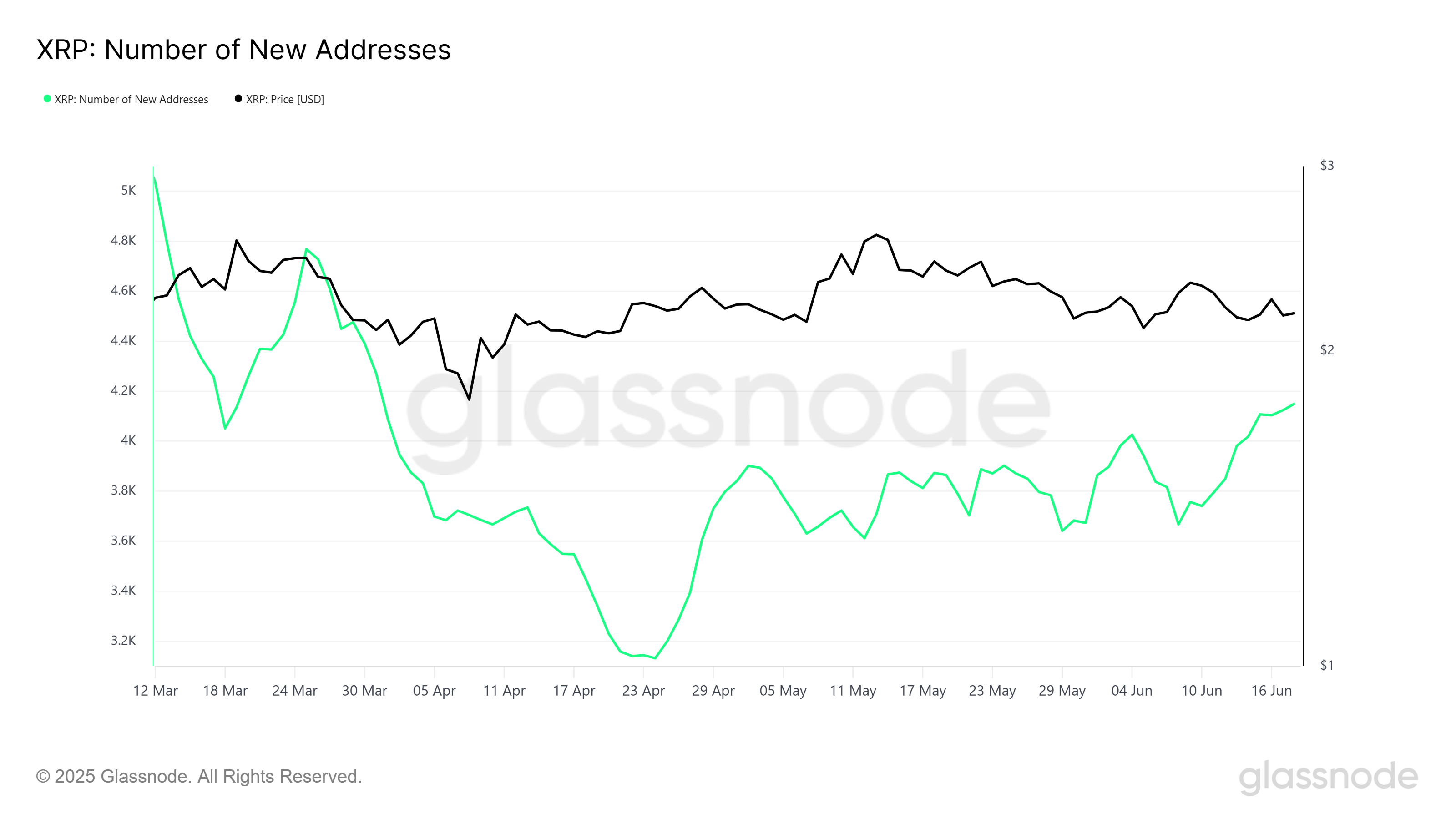 XRP için yeni adres ekleme oranı mart ayından bu yana önemli bir düşüş gösterdi, bu da coin’in yeni yatırımcılar için cazibesini kaybettiğini gösteriyor. Günlük olarak sadece 4.000’den biraz fazla yeni adres ekleniyor ve XRP’nin büyümesi yavaşlıyor. Bu eğilim, yatırımcıların net bir yönü olmayan bir varlıkla etkileşim kurmaktan çekindiği daha geniş bir piyasa belirsizliğini yansıtıyor.