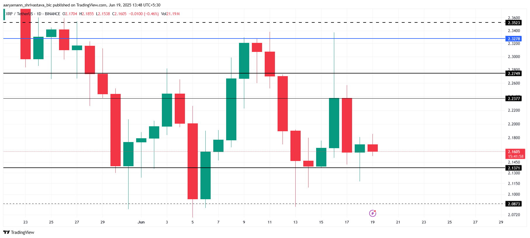 Yazı yazılırken, XRP’nin fiyatı 2,16 Dolar seviyesinde işlem görüyor ve 2,13 Dolar destek seviyesinin üzerinde tutunuyor. Bu destek, daha fazla düşüşü önlemeye yardımcı oldu ve XRP için olası senaryo, bu seviyenin üzerinde bir fiyat durgunluğu. Bir sonraki direnç noktası 2,23 Dolar seviyesinde bulunuyor ve bu seviye aşılmadığı sürece kısa vadeli kazançları sınırlayabilir.