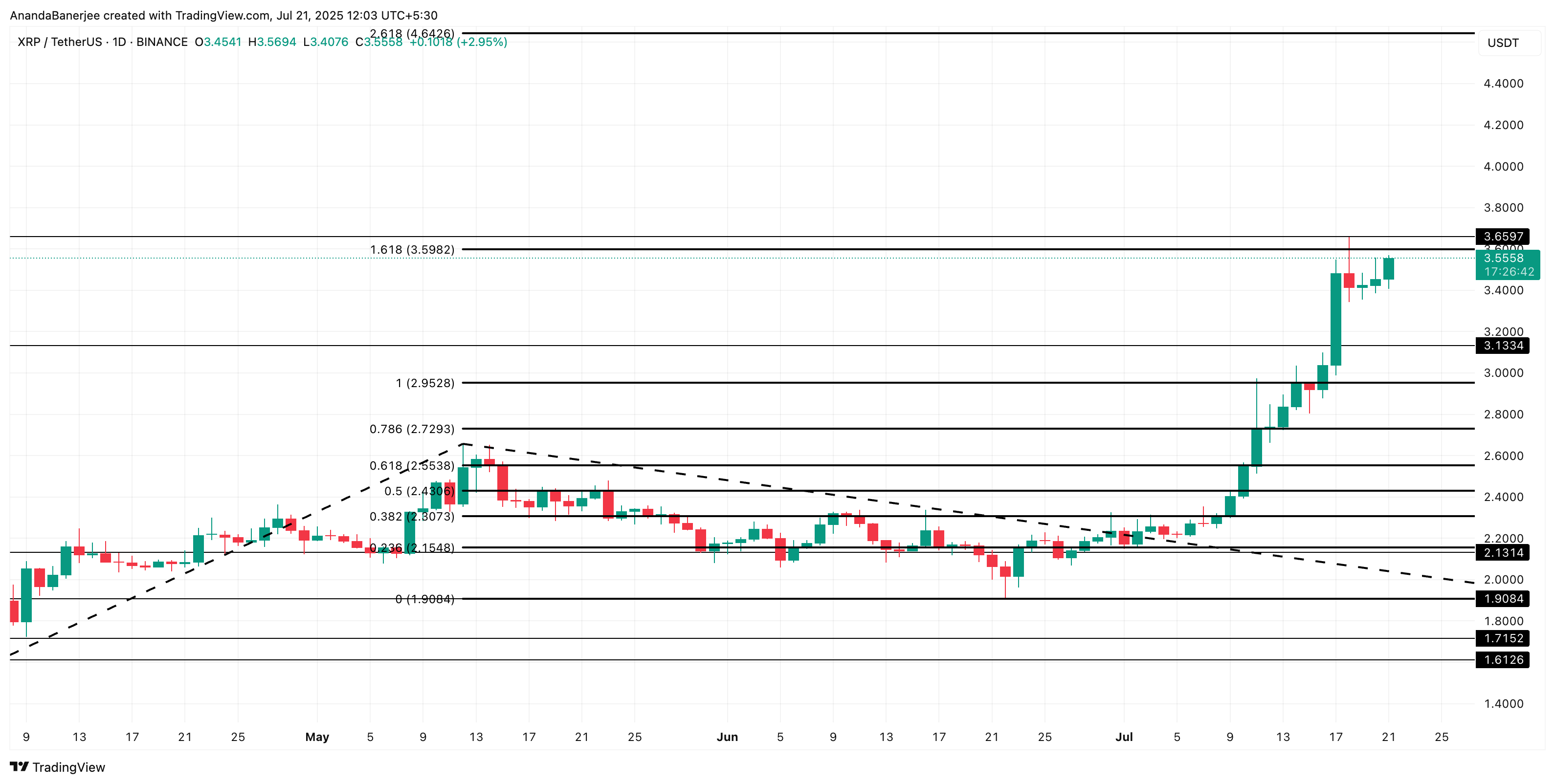 XRP fiyatı, %21’lik haftalık kazançlarını koruyarak 3,66 Dolarlık yeni bir tüm zamanların en yüksek seviyesine ulaştıktan sonra 3,50 Dolar civarında soğudu.
