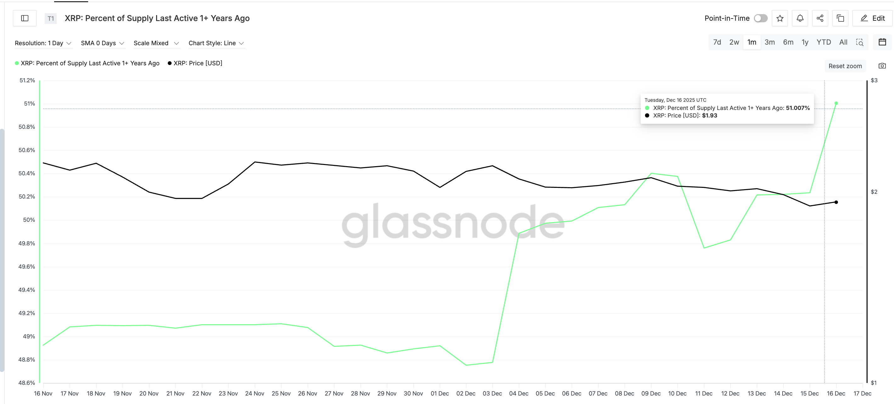 Endişe verici bir sinyal de bir yıldan uzun süredir hareketsiz olan XRP arzının oranından geliyor. Bu veri 2 Aralık’ta %48,75 iken %51,00 seviyesine yükseldi ve son bir ayın zirvesine çıktı. Uzun süredir bekleyen coin’lerin hareketlenmesi genellikle eski arzın piyasaya çıkması anlamına gelir. Bu da panik olmadan dahi satış baskısı doğurabilir.