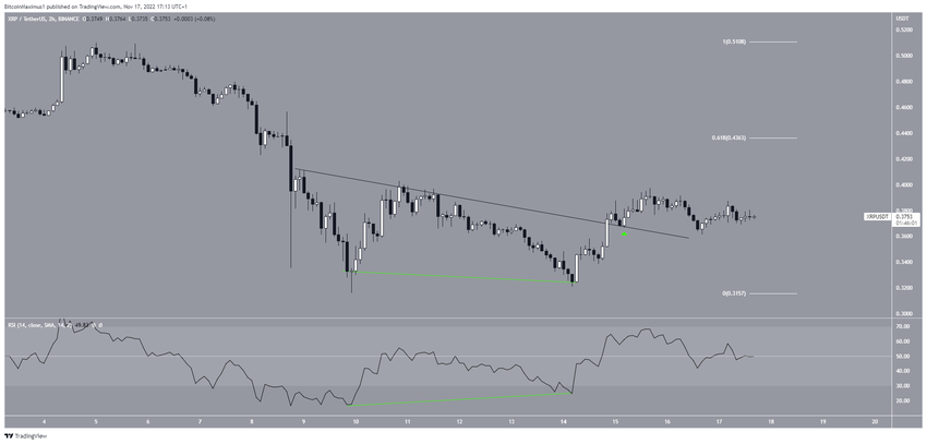 Dip seviye, 13 Haziran’dan bu yana var olan yükselen destek çizgisini onayladı. 4 Kasım’da bu çizgiye geri döndükten sonra köklü altcoin, yutan boğa mumu oluşturdu (yeşil simge). XRP için olumlu bir haber olmamasına rağmen, o tarihten beri yükseliyor.