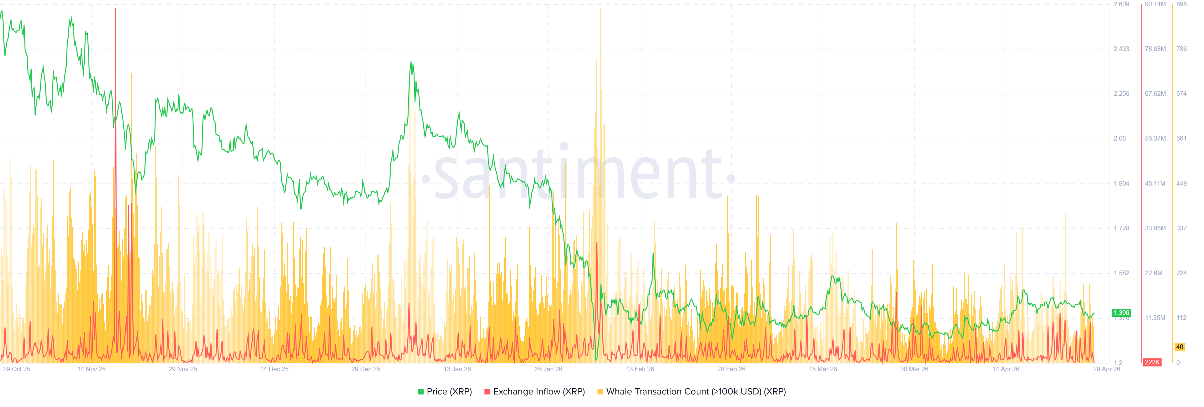 XRP için kripto para borsası girişleri ve balina işlemleri / Kaynak: Santiment