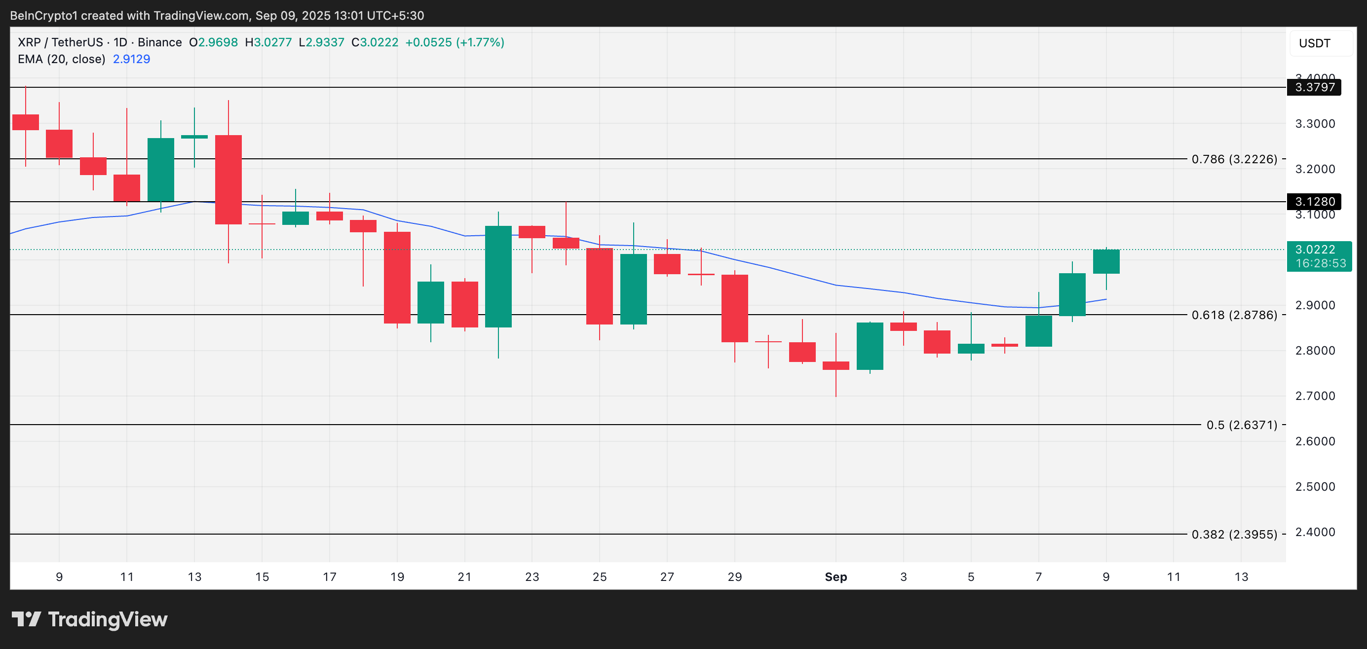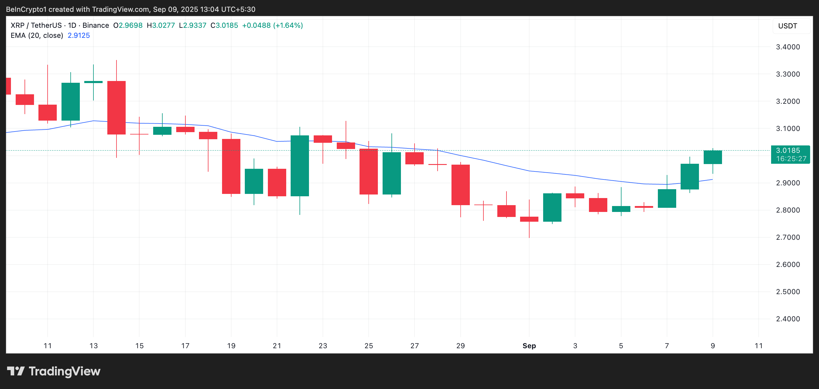 Ayrıca, XRP’nin yükselişi, günlük grafikte 20 günlük üstel hareketli ortalamanın (EMA) üzerine çıkarak yukarıda belirtilen yükseliş görünümünü doğruladı. Bu yazının yazıldığı sırada, önemli hareketli ortalama, XRP’nin fiyatının altında 2,91 Dolar seviyesinde dinamik bir destek oluşturuyor.