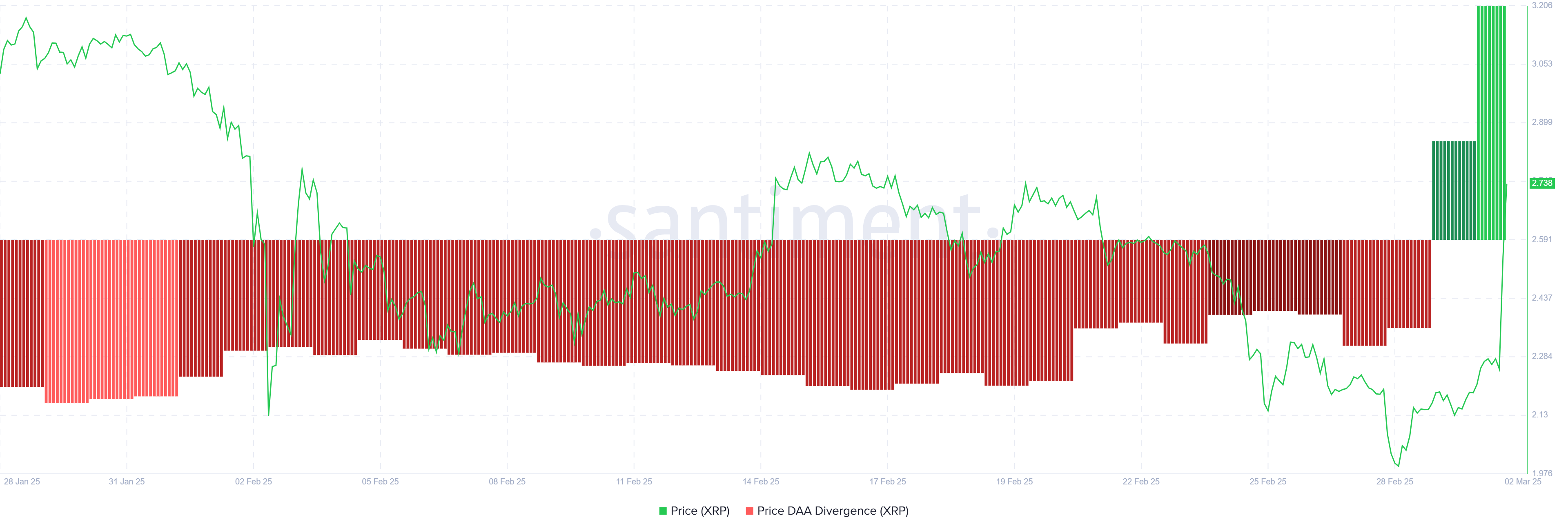 Fiyat DAA Farklılığı (PDA), şu anda XRP için alım sinyali veriyor, çünkü hem fiyat hem de yatırımcı katılımı arttı. Aktif adreslerdeki artış, daha fazla kişinin piyasaya girdiğini ve token’a olan ilgiyi artırdığını gösteriyor. Bu, XRP’nin fiyatı için olumlu bir işaret, çünkü artan katılım genellikle yatırımcılardan gelen güveni işaret eder ve bu da fiyatı daha da yukarı taşır.