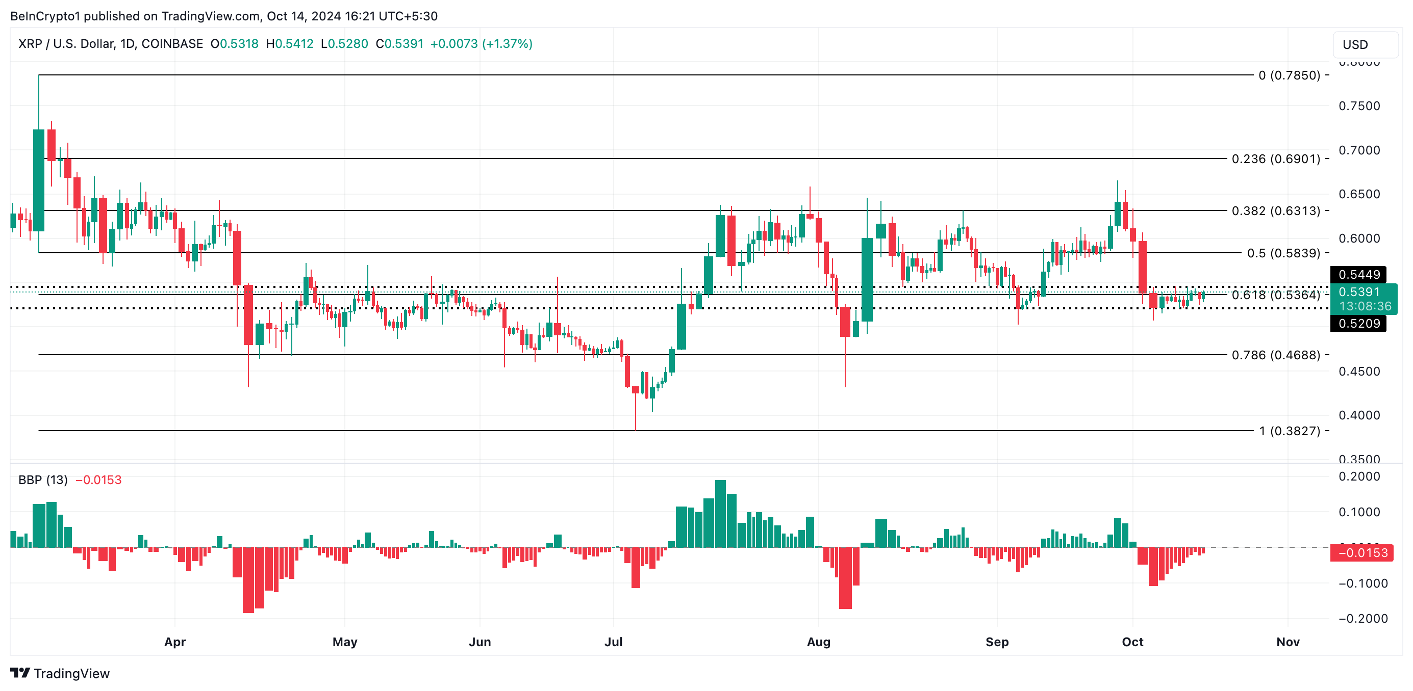 1 Ekim’den bu yana Ripple’ın XRP’si, 0,54 dolarlık direnç ve 0,52 dolarlık destek arasında dar bir alanda sıkışmış durumda. Ayıların baskısı arttıkça, bu aralığın üzerine çıkma ihtimali de giderek azaldı.