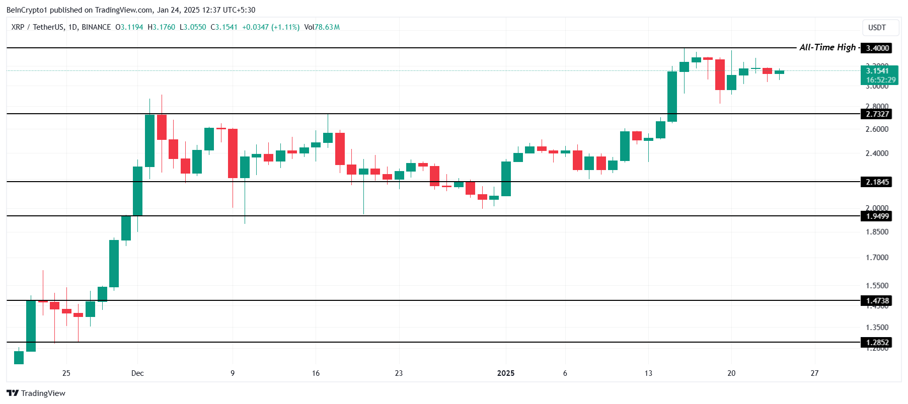 Öte yandan, XRP, 2,73 Dolar’ı güçlü bir destek olarak güvence altına alabilirse, yeniden toparlanabilir. Bu seviyeden bir sıçrama, altcoin’in 3,40 Dolar ATH bariyerini aşmasını sağlayabilir. Başarılı olursa, XRP yeni zirveler oluşturabilir, düşüş senaryosunu geçersiz kılar ve yatırımcı güvenini yeniden canlandırır.