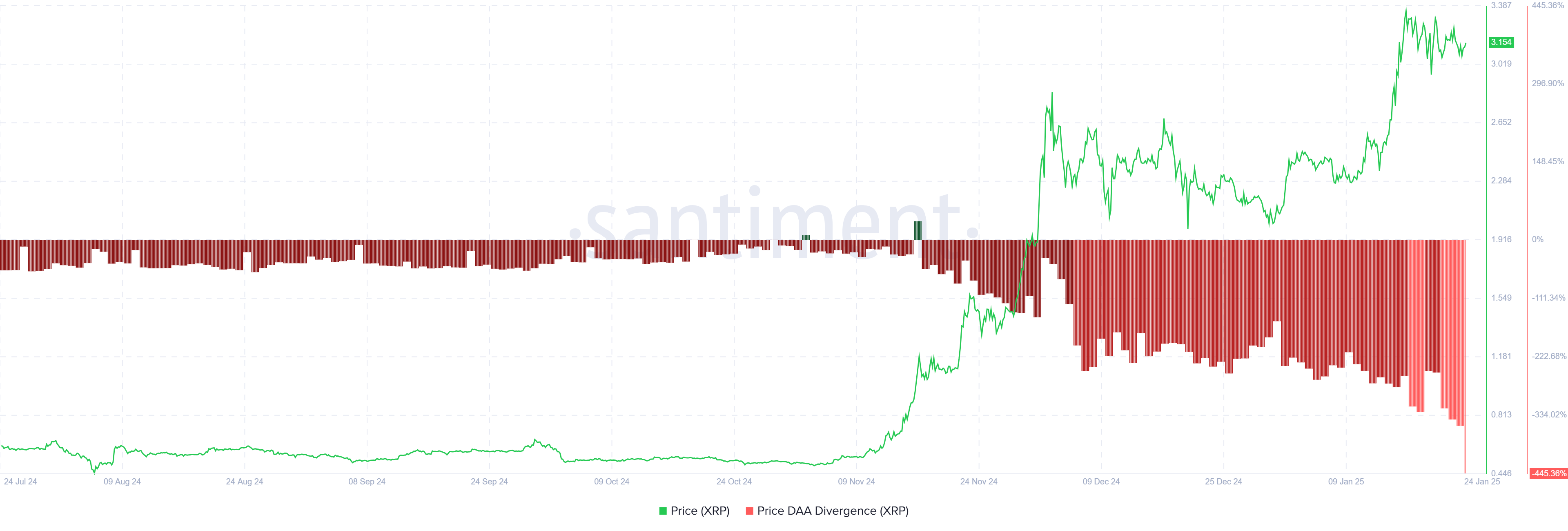 Fiyat Günlük Aktif Adresler (DAA) Farklılığı, XRP ağındaki yatırımcı aktivitesindeki düşüşü yansıtarak net bir satış sinyali veriyor. Azalan işlem hacmi, altcoin’e olan güvenin azaldığını gösterdiği için endişe verici. DAA Farklılığı üzerindeki kırmızı çubuklar, yatırımcıları potansiyel fiyat düşüşleri konusunda uyararak güçlü bir satış sinyali veriyor.