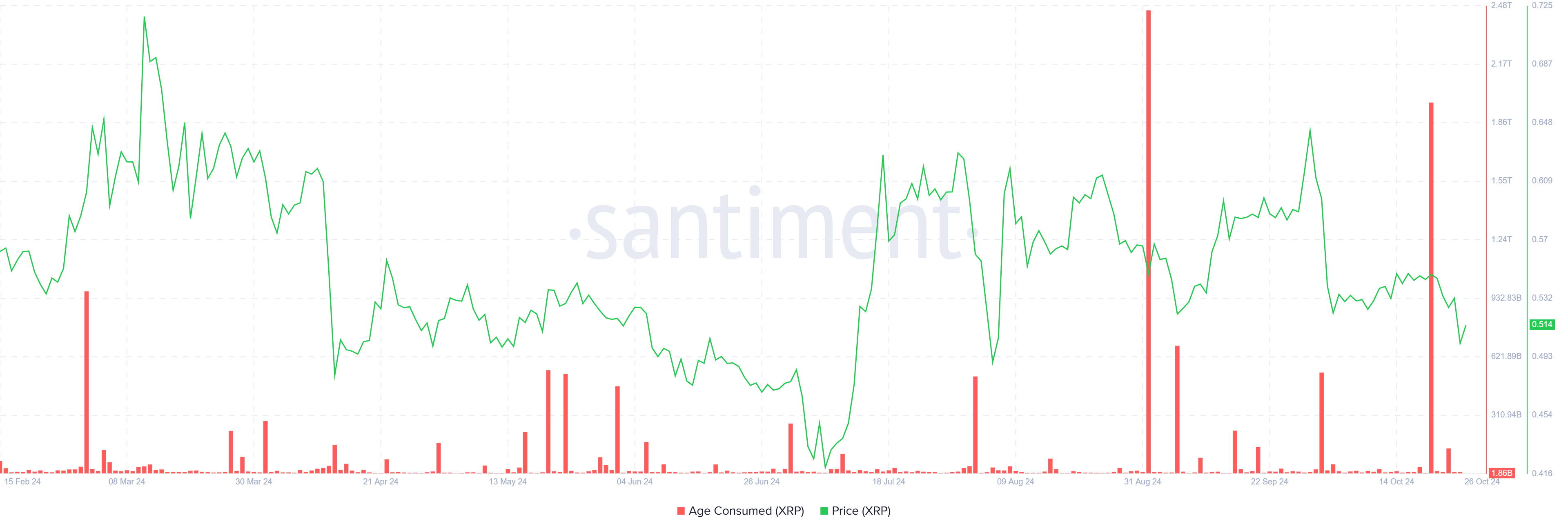 XRP’nin fiyatındaki son düşüş, varlığın değer kaybetmesiyle belirsizlikle tepki veren uzun vadeli sahipler (LTH’lar) tarafından büyük ölçüde açıklanabilir. “Yaş tüketimi” verilerindeki artış, bu LTH’ların fiyat düşüşünün hemen ardından varlıklarını hareket ettirmeye başladıklarını gösteriyor. Bu, deneyimli yatırımcılar arasında bir panik seviyesi olduğunu ve riskler konusunda endişelendiklerini öne sürüyor.