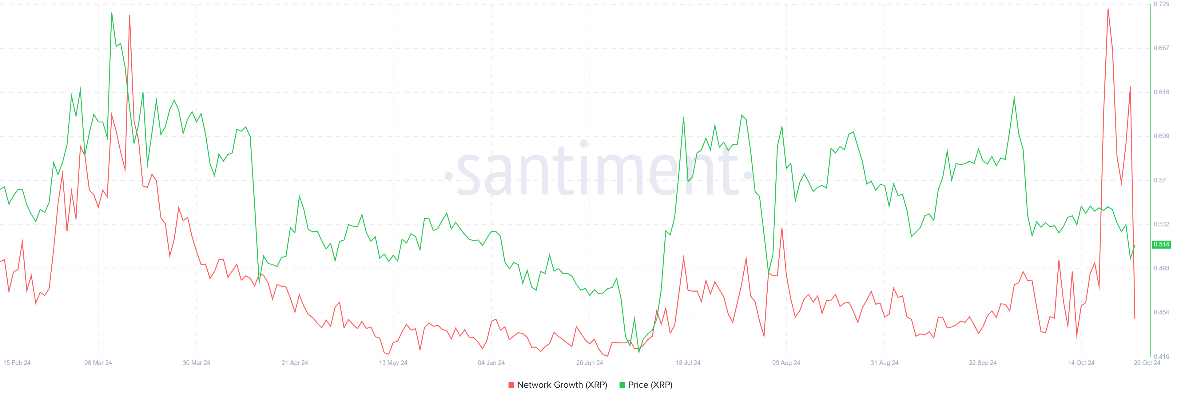 Ağ büyümesindeki bu düşüş, XRP’nin ivme kaybetmekte olduğunu gösteriyor. Düşük fiyatlarla başlangıçta adreslerde bir artış olmasına rağmen, XRP’nin değerindeki sürekli düşüş, potansiyel alıcılar arasında hevesi dindirdi.