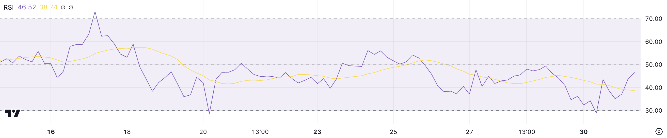 XRP RSI 46,5 seviyesinde, ne güçlü bir yukarı ne de aşağı yönlü momentum sinyali vermeyen nötr bir aralıkta yer alıyor. Kısa vadede, bu durum XRP’nin fiyat durgunluğu aşamasında olduğu ve alım veya satım baskısında önemli bir değişiklik olmadıkça mevcut seviyelere yakın seyredeceği anlamına gelebilir.