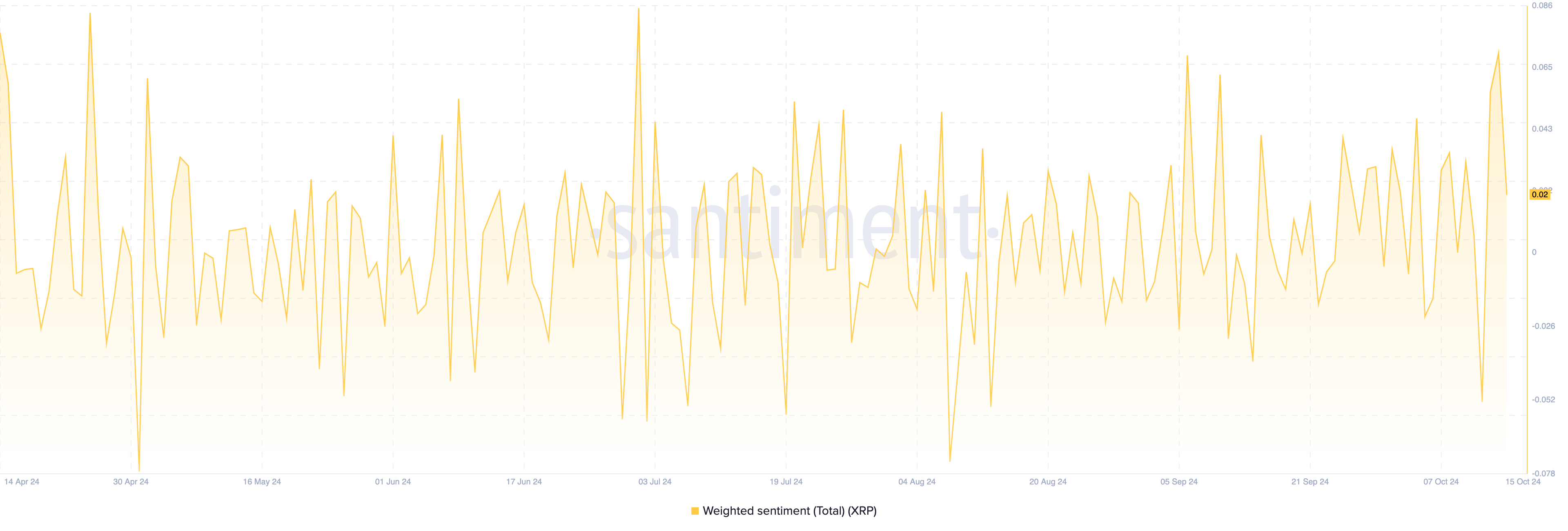 Ayrıca, XRP’nin Ağırlıklı Duyarlılığı önemli ölçüde düşmüş, topluluğun token hakkındaki algısındaki değişimi yansıtıyor. Ağırlıklı Duyarlılık, bir kripto para hakkındaki tartışmaların genel tonunu ölçer.