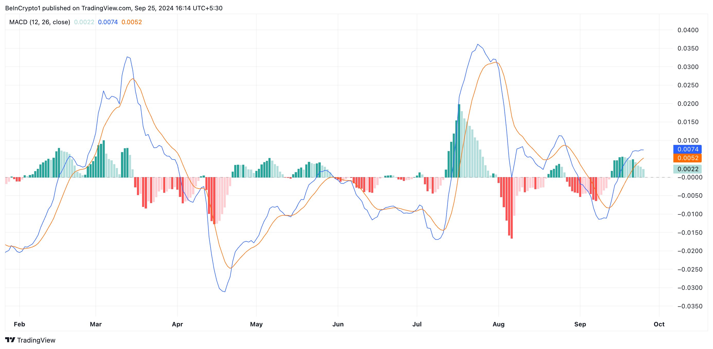 SponsoredXRP’nin 0,60 dolarlık direncini aşması, boğaların piyasaya hakim olmaya başladığını ve yükseliş için güçlü bir potansiyel olduğunu gösterir. Şu an MACD göstergesi, XRP’nin kısa vadeli ivmesinin uzun vadeli trendi geçtiğini işaret ediyor. Bu, genelde fiyat artışı öncesi görülen bir boğa sinyali olarak kabul edilir.