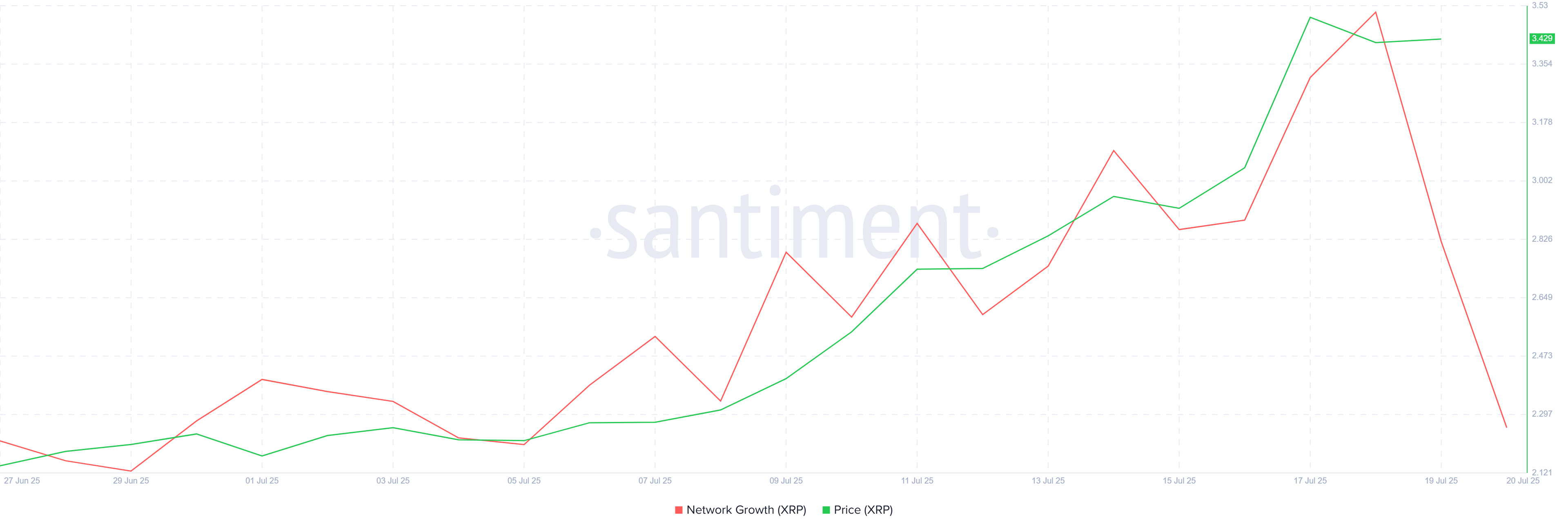 XRP şu anda 3,50 Dolardan işlem görüyor, güçlü bir haftadan elde edilen kazançları koruyor ancak yavaşlayan bir momentum gösteriyor. Altcoin, 3,66 Dolarlık ATH seviyesini yeniden test etmeye sadece %4 uzaklıkta. Ancak, yatırımcı duyarlılığı değişmeye devam ederse mevcut seviyeleri korumakta zorlanabilir.
