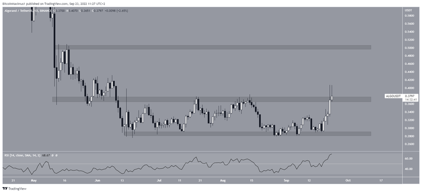 ALGO, Mayıs’tan bu yana 0,28 dolar ile 0,37 dolar aralığında hareket ediyor. Bu seviyenin dibi ve tepesi birkaç kere test edilip onayladı.
