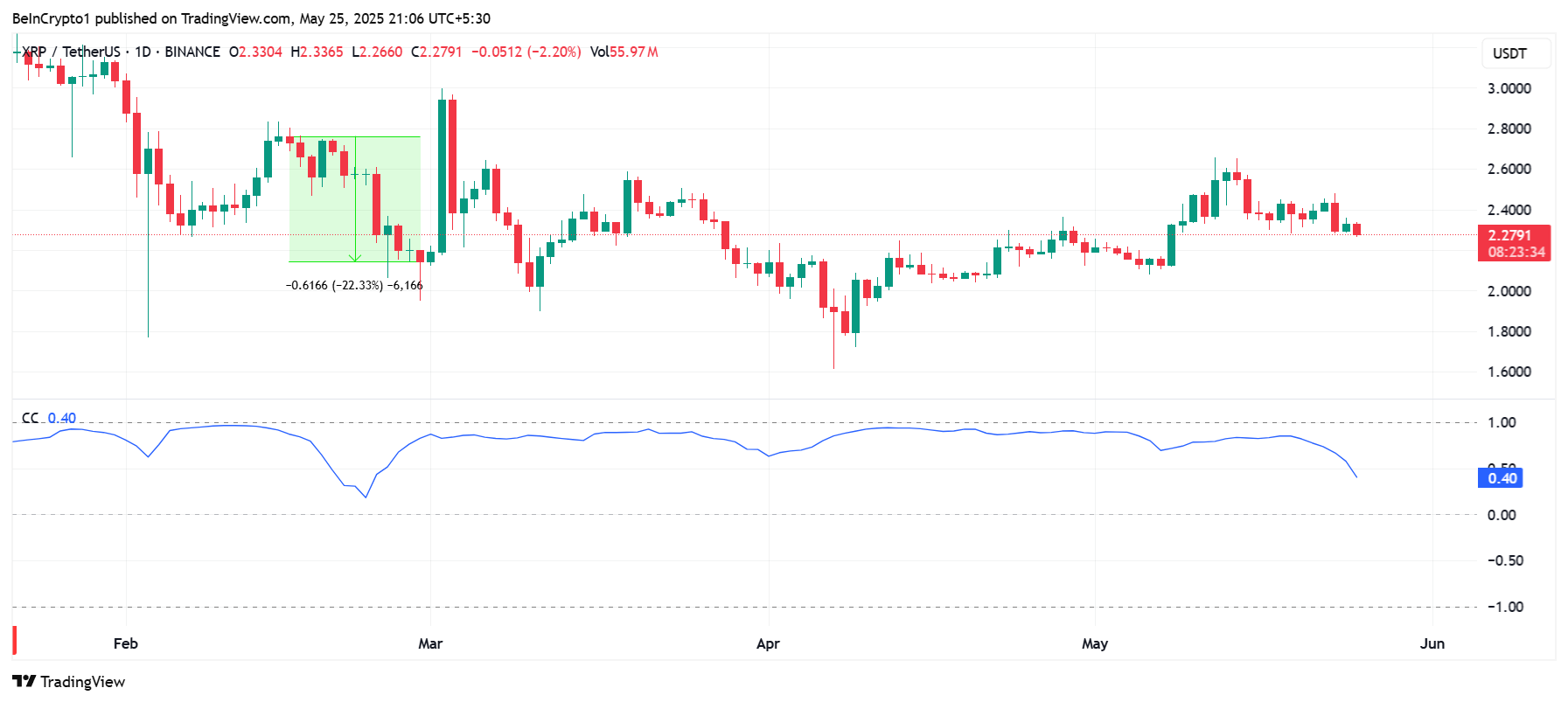 Tarihsel olarak, bu korelasyon zayıfladığında, XRP’nin fiyatı %22 oranında önemli bir düşüş yaşadı. Ancak bu düşüşün ardından varlık toparlandı.