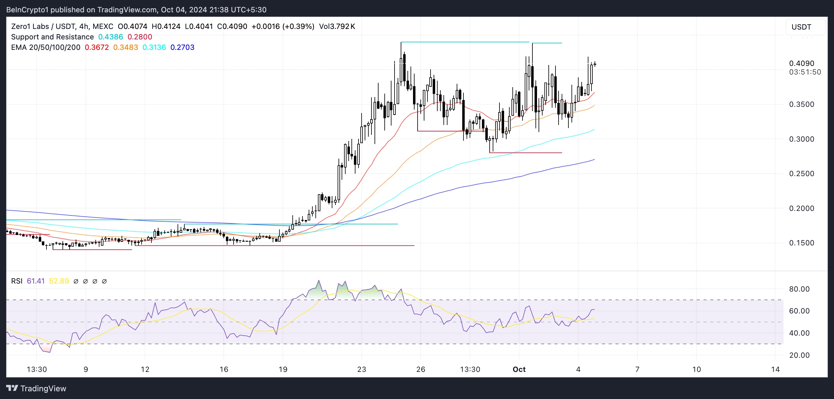 DEAI fiyatı geçen hafta %14,05 artarak şu anda 0,41 dolar seviyesinde. DEAI’nin EMA çizgileri güçlü bir şekilde boğa piyasasını işaret ediyor, kısa vadeli çizgiler tüm uzun vadeli çizgilerin üzerinde. Ayrıca aralarında iyi bir mesafe var, bu da yükseliş eğiliminin sürdürülebilir olduğunu gösteriyor.