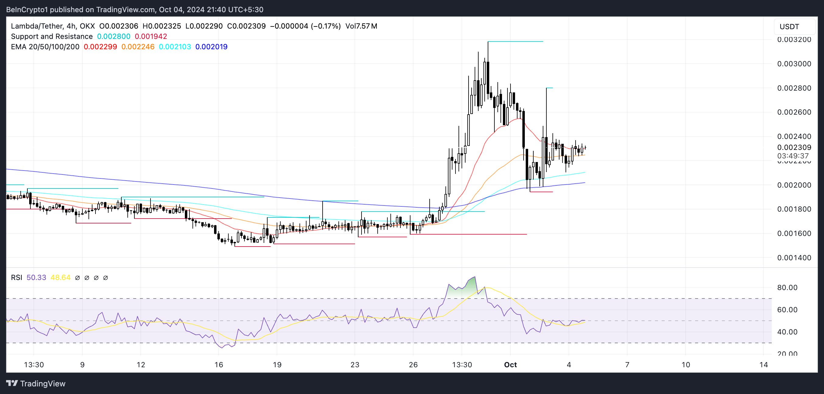 LAMB’ın RSI değeri şu anda 50,33 seviyesinde bulunuyor. Bu da varlığın ne aşırı alım ne de aşırı satım bölgesinde olmadığını, yani nötr bir pozisyonda olduğunu gösteriyor. Bu durum, LAMB’ın henüz aşırı alım baskısıyla karşılaşmadığını gösteriyor. Dolayısıyla büyüme için geniş bir alan bırakıyor.