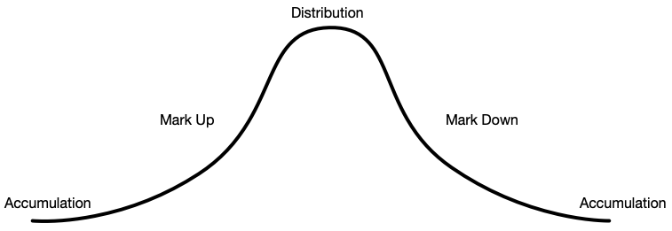 Dipten satın almak istiyorsanız market döngülerini takip etmeniz gerek. Akümülasyon, Yükseliş, Yayılma, Düşüş, Akümülasyon. Piyasadaki bu döngüler “akıllı paranın” her aşamada ne yaptığını gösteriyor Kazanmak isteyen bir yatırımcı olarak fiyatların düşük olduğu akümülasyon aşamasında dipten satın almak istiyoruz elbette hepimiz. Dolayısıyla maliyet ortalamalarını bu aşamada yapmalıyız.