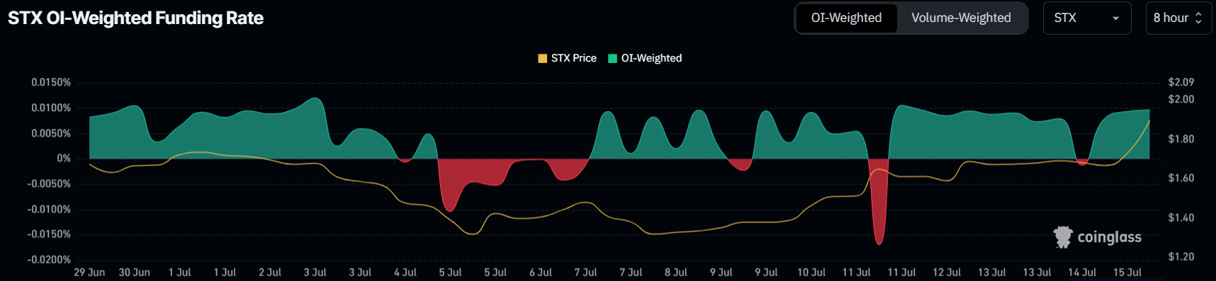 Son birkaç günün olumlu geçmesiyle birlikte Stacks fiyatı, yatırımcıların iyimserliğinden faydalanmaya hazırlanıyor. Altcoin’in fonlama oranı, yatırımcıların hâlâ şüpheci olduğunu gösteriyor. Ancak bu duyarlılık, oran negatiften pozitife dönmeye başladığı için değişiyor olabilir.