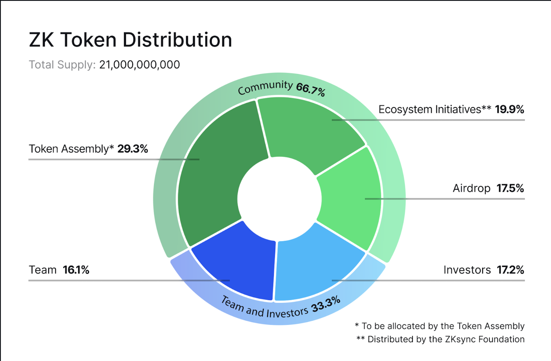 “695.232 cüzdana yapılan %17,5’lik airdrop, büyük ölçekli airdroplar arasında en büyük token dağıtımıdır. Airdrop tokenleri herhangi bir hak kazanma veya kilitleme süresi olmaksızın ilk günden tamamen likittir. Bu miktar, Matter Labs ekibi (%16,1) ve yatırımcıları (%17,2) için kilitlenen tahsislerden daha büyüktür.”